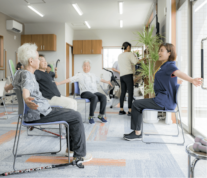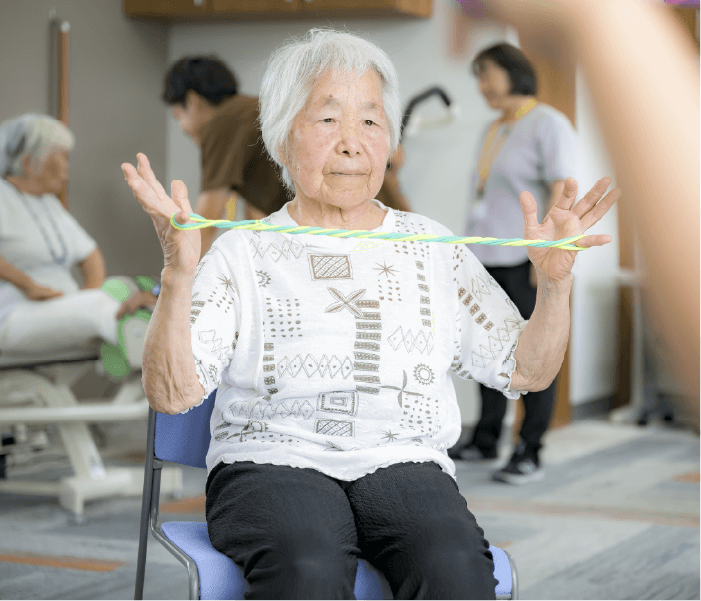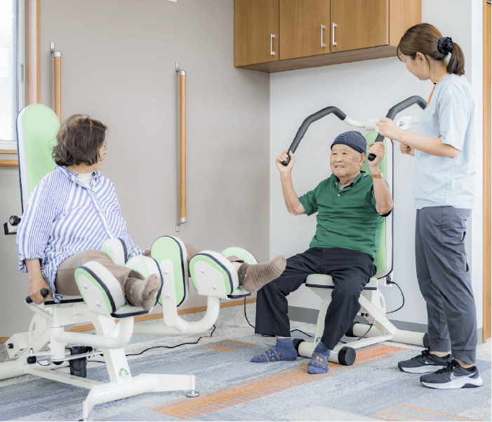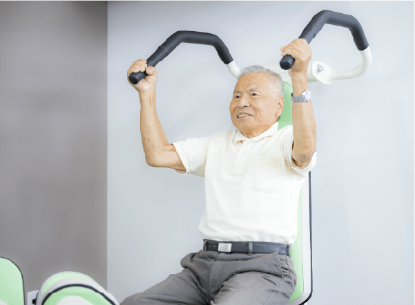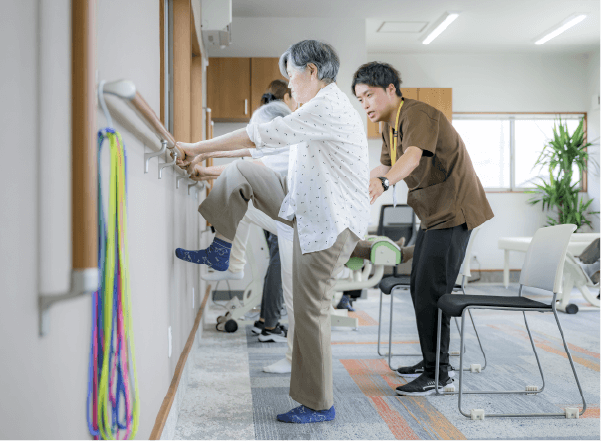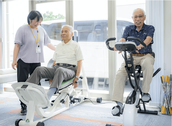 個別訓練、グループトレーニング、体操、さまざまな訓練を取り入れ、総合的に身体向上を促がします。