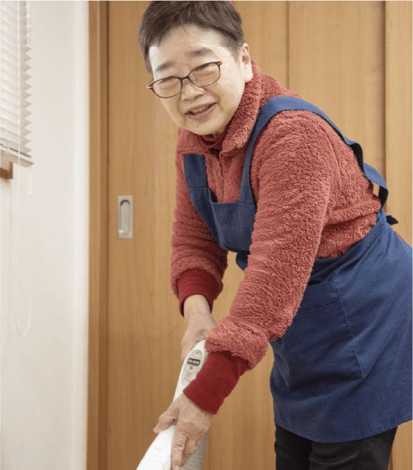 足腰が悪く、ヘルパーさんに掃除をしてもらっています。自分ではうまくできないことをやってもらい、とても助かっています。